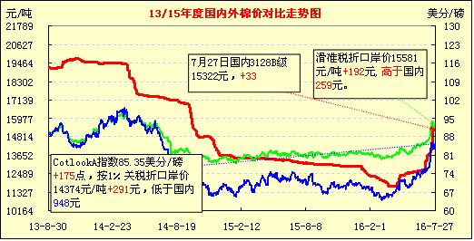 國內(nèi)外棉價對比圖表(07-27)