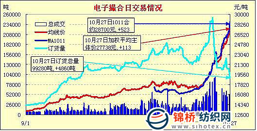 錦橋紡織網(wǎng)—資訊頻道> 棉花信息> 電子撮合>正文 電子撮合高開陰收縮量續(xù)漲(10-27)