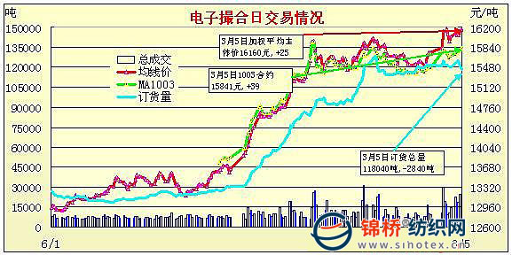 錦橋紡織網(wǎng)—資訊頻道> 棉花信息> 電子撮合>正文 電子撮合中幅續(xù)漲高位減倉整理(3-5)