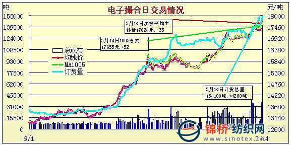錦橋紡織網(wǎng)—資訊頻道> 棉花信息> 電子撮合>正文 電子撮合縮量轉(zhuǎn)倉(cāng)中幅續(xù)漲(5-14)