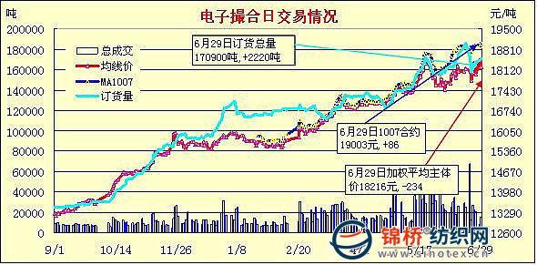錦橋紡織網(wǎng)—資訊頻道> 棉花信息> 電子撮合>正文 電子撮合打破盤整格局放量上漲(6-29)