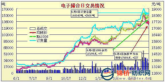 錦橋紡織網(wǎng)—資訊頻道> 棉花信息> 電子撮合>正文 電子撮合在現(xiàn)貨持續(xù)上漲增倉反彈(6-4)
