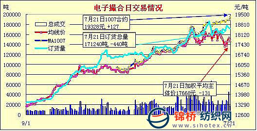 錦橋紡織網(wǎng)—資訊頻道> 棉花信息> 電子撮合>正文 電子撮合延續(xù)縮量減倉近漲遠(yuǎn)跌走勢(7-21)