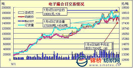 錦橋紡織網(wǎng)—資訊頻道> 棉花信息> 電子撮合>正文 電子撮合延續(xù)近漲遠(yuǎn)跌遠(yuǎn)期合約跌幅加大(7-9)