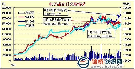 錦橋紡織網(wǎng)—資訊頻道> 棉花信息> 電子撮合>正文 電子撮合小幅續(xù)漲遠(yuǎn)期合約繼續(xù)大幅增倉(cāng)(8-26)