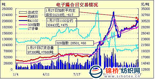 錦橋紡織網(wǎng)—資訊頻道> 棉花信息> 電子撮合>正文 電子撮合紐期給力放量全線飄紅破3萬(1-27)