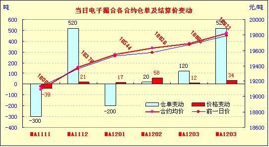 今日撮合各月合同開盤價(jià)高低互現(xiàn),隨后行情走勢震蕩,盤終維持分歧,近月合同收跌,遠(yuǎn)月合同收漲;其中跌幅最大的是近月MA1111合同,跌52元收于19080元,漲幅最大的是遠(yuǎn)月MA1204合同,漲32元收于19820元;盤內(nèi)最低價(jià)為MA1111收盤價(jià)19080元,最高價(jià)為MA1204合同盤中價(jià)19880元;當(dāng)日成交量、訂貨量雙雙續(xù)增。