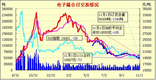 今日撮合多數(shù)合同繼續(xù)低開,之后行情弱勢(shì)震蕩為主,偶有反彈但動(dòng)力不足,尾盤全面呈現(xiàn)跌勢(shì),收市時(shí)各合同均價(jià)繼續(xù)收跌,遠(yuǎn)月合同跌幅較大;近月MA1111合同收于18900元,跌100元,遠(yuǎn)月MA1204合同收于19700元,跌154元;盤內(nèi)最低價(jià)為MA1111合同收市價(jià)18900元,最高價(jià)為MA1204合同盤中價(jià)19800元;當(dāng)日成交量大減,訂貨量減少。