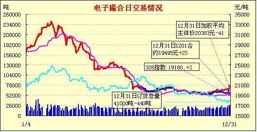 12月31日,全國棉花交易市場(chǎng)商品棉電子撮合交易成交21280噸,較上一日減少6060噸,訂貨量減少440噸,累計(jì)訂貨41000噸。今日撮合仍低開居多,顯示出市場(chǎng)信心仍不足,之后中遠(yuǎn)月合同行情多表現(xiàn)為低位震蕩,尾盤近中期合同小幅上行,收市時(shí)各合同均價(jià)跌多漲少,遠(yuǎn)月跌幅較為明顯;近月MA1201合同收于19520元,漲50元,主力MA1205合同收于20485元,跌41元;盤內(nèi)最低價(jià)為MA1201合同盤中價(jià)19400元,最高價(jià)為MA1206合同盤中價(jià)20690元;當(dāng)日成交量減少,訂貨量小減。