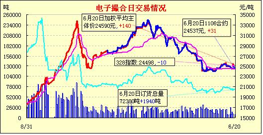 電子撮合漲跌互現(xiàn)遠(yuǎn)期合約增倉(cāng)(6-20)