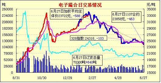 電子撮合低開大幅收跌跌破2.4萬元(6-27)