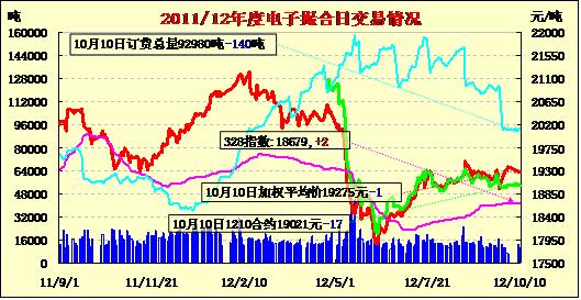 10月10日撮合市場倉量減少,均價(jià)下跌。各合同全線低開,日內(nèi)窄幅整理,終盤收跌。當(dāng)日遠(yuǎn)月MA1303合同跌60元/噸,跌幅最大,其他各合同跌17—51元/噸不等。交易總成交10220噸,較上一交易日減720噸,訂貨量減140噸,累計(jì)訂貨92980噸。從近一個(gè)月情況上來,外棉報(bào)價(jià)呈現(xiàn)下降趨勢(shì),而國內(nèi)棉價(jià)因收儲(chǔ)的支撐,緩慢上漲,這導(dǎo)致內(nèi)外棉差價(jià)進(jìn)一步增大,從昨日《2012電視電話會(huì)議》上了解到,國家有意要保護(hù)紡織企業(yè),其有可能實(shí)施低價(jià)拋儲(chǔ)及發(fā)放進(jìn)口配額方案,無論哪種方案,在全球消費(fèi)疲軟的大環(huán)境上看,似乎多會(huì)拖累國內(nèi)棉價(jià),或?qū)⑹諆?chǔ)支撐棉價(jià)的效果。宏觀經(jīng)濟(jì)方面,IMF調(diào)降全球經(jīng)濟(jì)增速至3.3% 創(chuàng)3年來最低增速,其預(yù)測中國經(jīng)濟(jì)增長將放緩。就整體宏觀條件上看,經(jīng)濟(jì)不景氣,國內(nèi)外市場進(jìn)一步低迷,將對(duì)棉市的后續(xù)消費(fèi)帶來消極影響,棉價(jià)可能上漲空間將進(jìn)一步被限制。