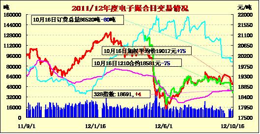 10月16日撮合市場量增倉減,均價(jià)收跌,五連陰。各合同開盤價(jià)高低互有,日內(nèi)寬幅震蕩,終盤收跌。近月MA1210合同跌75元/噸,跌幅最大;其他各合同跌17—61元/噸不等。交易總成交12960噸,較上一交易日增2480噸,訂貨量減80噸,累計(jì)訂貨86520噸。目前收儲(chǔ)日成交量放大,對(duì)棉價(jià)支撐力度增強(qiáng)。但紡織企業(yè)的訂單情況依然不容樂觀,下游服裝企業(yè)的庫存維持高位,紡織品需求依然沒有明顯的轉(zhuǎn)好跡象,而同時(shí)棉副產(chǎn)品價(jià)格下跌使棉價(jià)承受下行壓力,預(yù)計(jì)短期內(nèi)棉價(jià)將穩(wěn)定。