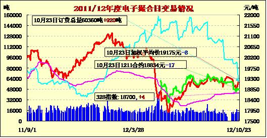 10月23日撮合市場倉增量減,均價(jià)基本下跌。各合同高開,日內(nèi)寬幅震蕩,終盤基本收跌。當(dāng)日新合同MA1304合同上漲42元/噸,為唯一上漲合同;其他各合同均有不同程度的下跌,跌17—56元/噸不等。交易總成交12700噸,較上一交易日減700噸,訂貨量增920噸,累計(jì)訂貨60360噸?;久嫔?,近期籽棉收購價(jià)有所降低,部分地區(qū)棉農(nóng)惜售,有些軋花廠由于利潤不佳及擔(dān)心籽棉質(zhì)量問題謹(jǐn)慎收購,籽棉收購進(jìn)度有所放緩。目前美棉質(zhì)量問題仍舊受到市場關(guān)注,但逼倉危險(xiǎn)并不太大,全球棉市的疲軟格局仍舊不變,預(yù)計(jì)外棉近期價(jià)格將企穩(wěn),國內(nèi)棉價(jià)將得不到外棉價(jià)格的支撐。從目前紡織企業(yè)下游訂單來看,雖說清淡但有所改善,棉花需求將有所回升,再綜合收儲(chǔ)的效果,近期棉價(jià)或?qū)⒎€(wěn)中有升。