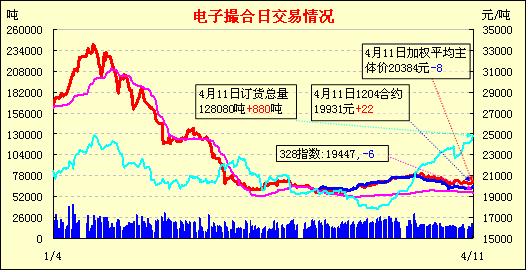 4月11日,全國棉花交易市場商品棉撮合交易成交13260噸,較上一日減少5660噸,訂貨量增加880噸,累計訂貨量128080噸。今日撮合開盤高低不一,盤中窄幅震蕩,終盤近漲遠跌;近月MA1204和MA1205合同分別漲幅1元和5元,其他合同均下跌,跌幅在15-30元之間?;久嫔?,隔夜外圍市場因投資者對歐洲困難經(jīng)濟體的擔憂重燃,國際金融市場重挫;棉花市場恰逢其時公布的美國農(nóng)業(yè)部報告亦利空,使得剛現(xiàn)的反彈勢頭再次承壓。目前國內(nèi)現(xiàn)貨市場交投依舊不旺,據(jù)調(diào)查雖然有部分紡織企業(yè)詢價,但雙方買賣意愿都比較謹慎。市場人士認為,當前已進入植棉期,雖然大環(huán)境對棉價仍有壓力,但大幅向下的空間不會太大,政策將傾向平穩(wěn)度過植棉期。