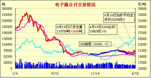 4月19日,全國棉花交易市場(chǎng)商品棉撮合交易成交13920噸,較上一日增加280噸,訂貨量增加2640噸,累計(jì)訂貨量133780噸。今日撮合多數(shù)高開,盤中窄幅走高,盤終收漲;當(dāng)日近月MA1204合同漲幅最大為102元,其他合同漲幅在32-65元之間?;久嫔?,印度棉花咨詢委員會(huì)公布數(shù)據(jù)顯示印度產(chǎn)量589.9萬噸,消費(fèi)428.4萬噸,預(yù)期出口195.5萬噸,期末庫存僅為42.7萬噸,期末庫存遠(yuǎn)遠(yuǎn)低于USDA預(yù)測(cè)的207.9萬噸;此舉大幅提振期棉市場(chǎng)大漲。國內(nèi)市場(chǎng)上,交投仍較平淡,市場(chǎng)焦點(diǎn)轉(zhuǎn)至春播上,據(jù)調(diào)查因農(nóng)資成本上漲以及糧棉收益比較弱,各主產(chǎn)區(qū)均有縮減植棉計(jì)劃。