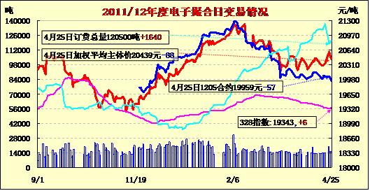 4月25日撮合交易倉量齊增,全線收跌。全國棉花交易市場商品棉撮合交易成交15460噸,較上一日增加280噸,訂貨量增加1640噸,累計訂貨量120500噸。今日撮合低開盤中窄幅震蕩,尾盤全線收跌。成交量和訂貨量較昨日有所增加。經濟方面,歐債危機近期再次出現(xiàn)緊張局勢、部分歐洲國家政局出現(xiàn)變數(shù)以及經濟數(shù)據(jù)不佳導致歐洲股市大跌。
