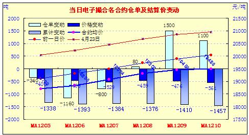 5月11日電子撮合跟風(fēng)跳水,跌幅加深。今日撮合高開低走,尾盤全線收跌,近月MA1205跌幅達(dá)400元,13個交易日累計下跌1338元,結(jié)算價跌至18700一線。隨著本周以來撮合跌勢加大,甚至低于現(xiàn)貨銷售價格,這也有效促成了撮合成交量增加。當(dāng)日交易總成交23100噸,較上一日增加1240噸。相關(guān)經(jīng)濟面,今日統(tǒng)計局公布,4月份CPI同比增長3.4%,符合之前市場預(yù)期,環(huán)比數(shù)據(jù)下降0.1%;周四央行報告,中國央行網(wǎng)站報告稱,由于勞動力成本及資源性產(chǎn)品價格上升,物價上行壓力依然存在。報告還稱,國際大宗商品價格波動帶來的輸入型通脹壓力依然存在。另外,海關(guān)總署10日發(fā)布外貿(mào)數(shù)據(jù),4月份進出口增速下滑至2.7%——除今年1月受春節(jié)因素影響外貿(mào)增長為負(fù)之外,這是2010年1月以來我國外貿(mào)月度增速的最低值。隨著我國出口環(huán)境低迷,國內(nèi)棉市的復(fù)蘇前景較不樂觀。