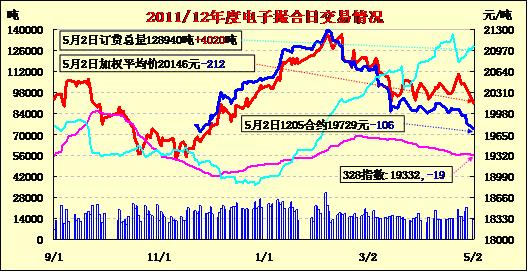 5月2日縮量增倉(cāng),弱勢(shì)依舊。今日撮合除遠(yuǎn)月MA1210合同高開收漲外,其他合同均低開低走,盤終收跌;當(dāng)日遠(yuǎn)月MA1210合同全天僅成交一筆,均價(jià)漲至21000元;MA1208合同收盤報(bào)跌110元,其他合同跌幅在64-105元之間。交易總成交13040噸,較上一日減少8120噸,訂貨量增加4020噸,累計(jì)訂貨量128940噸?;久嫔?,節(jié)日期間,市場(chǎng)還在對(duì)增發(fā)配額傳聞的猜測(cè)中,印度市場(chǎng)再次爆出將放開出口限制政策,此舉令短期棉價(jià)再次承壓。從廣交會(huì)上獲悉的消息看,外商參與的較少,訂單情況或不樂(lè)觀。