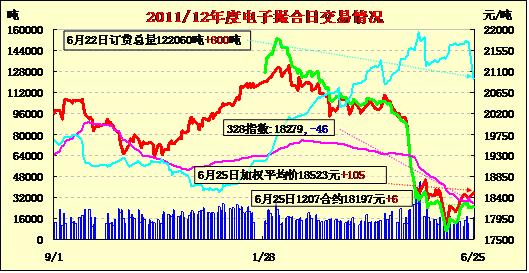 6月25日撮合交易量倉均增,漲跌互現(xiàn)。早盤多數(shù)合同低開,盤中沖高回落,終盤漲跌互現(xiàn)。交易總成交16840噸,較上一日增加4940噸,訂貨量增加800噸,累計(jì)訂貨122060噸?;久嫔希M(fèi)終端的不振繼續(xù)對(duì)棉市基本面施壓,從目前紗線和棉布市場(chǎng)了解的情況看,雖然價(jià)格下降幅度較前期有所減弱,但整體出貨情況依舊不好,市場(chǎng)信心仍未恢復(fù)。