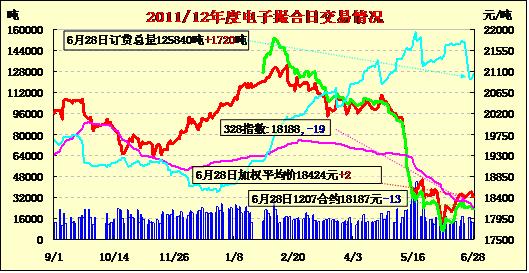 6月28日縮量增倉,漲跌互現(xiàn)。撮合市場未受外盤收跌拖累,多數(shù)合同高開,盤中窄幅震蕩,終盤漲跌互現(xiàn)。近遠月合同均下跌13元為當日跌幅最大合同,其他合同均小幅收漲,MA1208合同上漲12元為當日漲幅最大合同。交易總成交11340噸,較上一日減少1480噸,訂貨量增加1720噸,累計訂貨125840噸?;久嫔?,雖然市場預期美棉實際種植面積和最終產(chǎn)量或有調降,但從目前宏觀經(jīng)濟的疲軟度上看,未來一段時間內紡織消費仍難有實質性的改觀,所以交投較為清淡。后期天氣因素的變化將有效影響本年度原料基礎價格,但能否走出低迷,還的從下游消費終端尋找突破口。