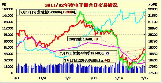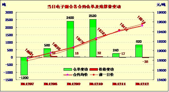 7月17日,撮合市場各合同多低開,日內(nèi)雖有小幅上漲,但總體看上行動(dòng)能趨弱,終盤近強(qiáng)遠(yuǎn)弱,持倉量繼續(xù)大幅增加。均價(jià)近漲遠(yuǎn)跌;近月MA1208合同漲52元/噸為當(dāng)日漲幅最大合同,遠(yuǎn)月MA1212合同跌38元/噸為當(dāng)日跌幅最大合同,其他合同表現(xiàn)為近強(qiáng)遠(yuǎn)弱。交易總成交15740噸,較上一日增加840噸,訂貨量增加5360噸,累計(jì)訂貨156060噸?;久嫔?,隨著本年度皮棉經(jīng)營結(jié)束,一些棉企開始布局新年度的棉花收購。市場對于目前棉花的生長情況及未來天氣對其優(yōu)良率的影響關(guān)注度明顯提高。宏觀上,市場由于擔(dān)憂晚間伯南克的講話內(nèi)容,市場風(fēng)險(xiǎn)資金在大宗商品市場結(jié)清部分頭寸,以規(guī)避交投風(fēng)險(xiǎn)。