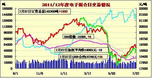 7月27日撮合市場各合同多數(shù)高開,隨后高位震蕩,終盤收漲。除MA1212合同小幅續(xù)跌外,其他合同均出現(xiàn)反彈,其中MA1209合同均價漲44元/噸為當(dāng)日漲幅最大合同,其他合同漲幅在13-34元/噸之間。交易總成交13660噸,較上一日增加1080噸,訂貨量增加1920噸,累計訂貨140300噸。