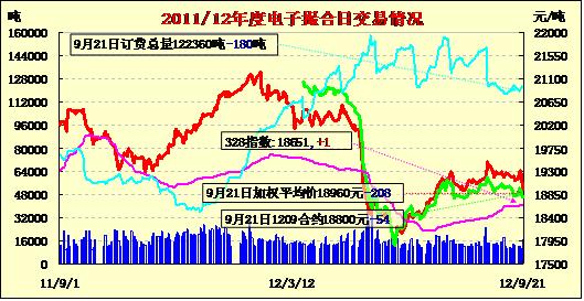 9月21日撮合市場各合同全面低開,日內(nèi)震蕩走低,終盤收跌,三連跌。當日MA1212合同跌67元/噸,跌幅最大;其他各合同跌33—66元/噸不等。交易總成交16620噸,較上交易日增7320噸,訂貨量減180噸,累計訂貨122360噸?;久嫔希瑑涿尥斗乓呀咏猜?,成交量近幾日再次放大;收儲日成交量逐步增大,昨日成交1.629萬噸,顯示企業(yè)交儲積極。但下游需求疲軟仍舊制約棉價上漲。按目前綜合情況來看,收儲仍舊是影響棉市主要因素,隨著收儲的逐步深入,價格將逐步向收儲價靠近。