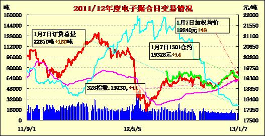 1月7日撮合各合同高開,日內(nèi)寬幅震蕩,終盤上漲。當(dāng)日除了MA1306因無成交,價(jià)格不變外,其余合同價(jià)格漲14-81元/噸,其中MA1303合同漲81元/噸,價(jià)格上漲最多。交易成交10580噸,較上一交易日增60噸。訂貨量增加160噸,累計(jì)訂貨22670噸。今日全國棉花交易市場和中國棉紡織行業(yè)協(xié)會(huì)聯(lián)合發(fā)布了關(guān)于審核參與儲(chǔ)備棉競賣交易資格的公告,在為近期儲(chǔ)備棉競拍做準(zhǔn)備。目前了解到,紡織企業(yè)對于競拍儲(chǔ)備棉熱情較高,有備貨做庫存的欲望,后期棉花供應(yīng)將趨于寬松