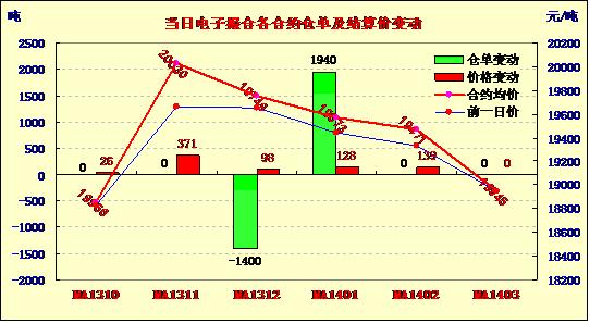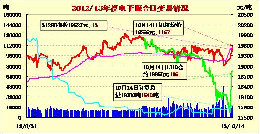 10月14日,商品棉交易各合同開盤高低不一,均價全線續(xù)漲。MA1310平均價18856漲26,MA1311平均價2003漲371,MA1312均價19748漲98,MA1401均價1973漲128,MA1402平均價19471漲139,MA1403均價18945不變。交易成交18980噸,較上一交易日增6460噸。訂貨量增540噸,累計訂貨18780噸。MA1312合同訂貨量減少1400噸,MA1401合同增加1940,其余合同訂貨量不變。目前近月MA1310訂貨1060噸無變化,MA1401訂貨12640噸,為主要訂貨合同。