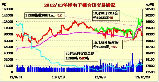 10月26日商品棉交易合同開盤高低不一,多數(shù)下跌。MA1311平均價(jià)19993不變,MA1312均價(jià)19545跌86,MA1401均價(jià)19474跌34,MA1402平均價(jià)19342漲28,MA1403均價(jià)19123跌48,MA1404均價(jià)18740跌60。交易成交19340噸,較上一交易日增9840噸。訂貨量增580噸,累計(jì)訂貨18280噸。