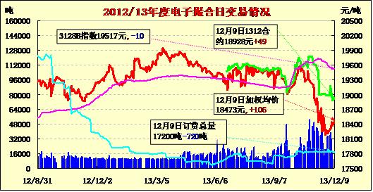 12月9日,商品棉交易各合同開盤高低不一,日內(nèi)寬幅震蕩,均價(jià)多數(shù)上漲。MA1312均價(jià)18928漲49,MA1401均價(jià)18821漲73,MA1402平均價(jià)18453跌3,MA1403均價(jià)18323漲4,MA1404均價(jià)18213漲17,MA1405均價(jià)18228漲28。交易成交10180噸,較上一交易日減少6820噸。訂貨量減720噸,累計(jì)訂貨17200噸。