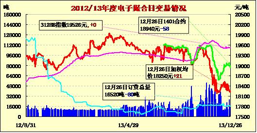 12月26日,商品棉交易各合同開盤高低不一,走勢(shì)平穩(wěn),均價(jià)下跌。MA1401均價(jià)18940跌58,MA1402平均價(jià)18315跌38,MA1403均價(jià)18233跌6,MA1404均價(jià)18110跌42,MA1405均價(jià)18025不變,MA1406均價(jià)18225不變。交易成交10080噸,較上一交易日減4760噸。訂貨總量減80噸,累計(jì)訂貨16520噸。