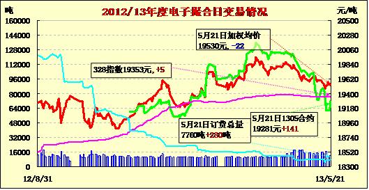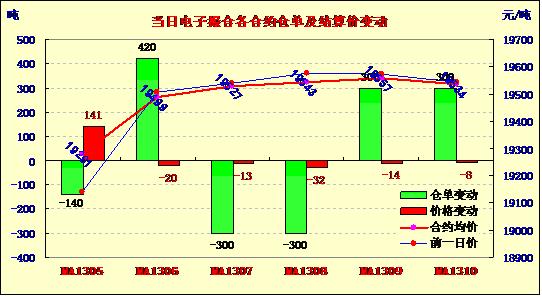 5月21日,商品棉交易多數(shù)合同高開,日內(nèi)價格上下浮動較大,終盤漲跌互現(xiàn)。近月MA1305合同大幅上漲140元/噸至19281元/噸。其余合同均價下跌,跌8—32元/噸不等。交易總成交12280噸,較上一交易日增加1360噸。MA1305成交140噸,明日為MA1305最后上市日。MA1308成交量放大,成交4100噸,其余合同成交量縮小,成交1720—2300噸不等。訂貨總量增加280噸,累計訂貨7760噸。MA1306、MA1309和MA1310訂貨量增持420噸、300噸和300噸。MA1305、MA1307和MA1308訂貨量分別增持420噸、300噸和300噸。