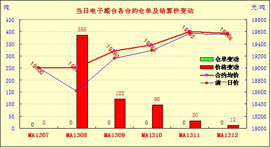 7月4日,商品棉交易多數(shù)合同高開,早盤震幅較大,午后走勢(shì)平穩(wěn),均價(jià)全線上漲。MA1307平均價(jià)19000不變,MA1308平均價(jià)19000漲386,MA1309平均價(jià)19280漲122,MA1310平均價(jià)19384漲96,MA1311平均價(jià)19603漲30,MA1312均價(jià)19568漲12。交易成交19300噸,較上一交易日減少1520噸。MA1307無(wú)成交,MA1308成交20噸。MA1311為今日主要成交合同,成交7620噸。MA1309、MA1310和MA1312分別成交4480噸、2260噸和3400噸。訂貨量無(wú)變化,累計(jì)訂貨量15080噸。MA1309和MA1310為主要訂貨合同,分別訂貨4240噸和5100噸。