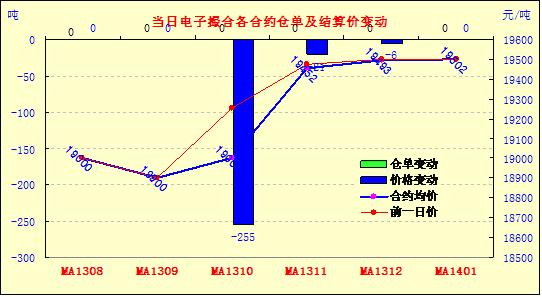 8月16日,商品棉交易開盤高低不一,日內(nèi)波動頻率較低,均價下跌。MA1308平均價19000不變,MA1309平均價18900不變,MA1310平均價19000跌255,MA1311平均價19451跌21,MA1312均價19493跌6,MA1401均價19502不變。交易成交10160噸,與較上一交易日持平。MA1311、MA1312和MA1401分別成交2640噸、3640噸和3800噸。其余合同基本無成交。訂貨量不變,累計訂貨量8340噸。目前近月MA1308訂貨1100噸。MA1311訂貨1880噸,訂貨量最大。