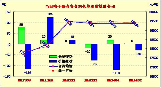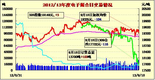 9月18日,商品棉交易各合同開盤高低不一,日內(nèi)寬幅震蕩,均價多數(shù)下跌。MA1309平均價17722跌116,MA1310平均價18224漲124,MA1311平均價19473漲18,MA1312均價19357跌76,MA1401均價19345跌118,MA1402平均價19367跌30。交易成交15300噸,較上一交易日減少11120噸。近月MA1309和MA1310成交仍舊不振。交投主要MA311~MA1402四份合約上,成交3540-4420噸不等。訂貨量增加100噸,累計訂貨13700噸。MA1311、MA1312和MA1401合同訂貨量分別增加80噸、20噸和20噸,MA1312合同訂貨量減少20噸,其余合同訂貨量不變。