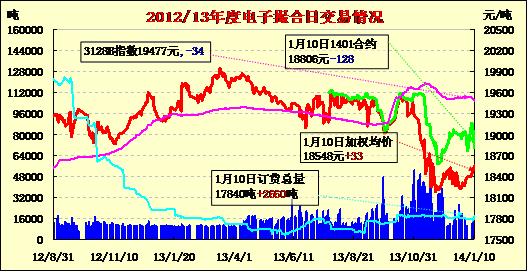 1月10日,商品棉交易各合同漲跌不一,寬幅震蕩,均價(jià)漲跌不一。MA1401均價(jià)18806跌128,MA1402平均價(jià)18651漲3,MA1403均價(jià)18511漲39,MA1404均價(jià)18390跌121,MA1405均價(jià)18359跌30,MA1406均價(jià)18512漲54。交易成交13780噸,較上一交易日增1180噸。訂貨量增2660噸,累計(jì)訂貨17840噸。