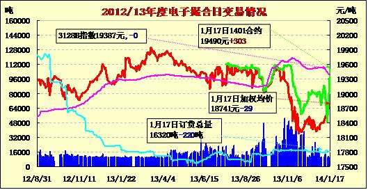1月17日,商品棉交易各合同多數(shù)低開(kāi),漲跌互現(xiàn)。MA1401均價(jià)19490漲303,MA1402平均價(jià)18862跌23,MA1403均價(jià)18812跌49,MA1404均價(jià)18578跌189,MA1405均價(jià)18530漲30,MA1406均價(jià)18578跌19。交易成交10120噸,較上一交易日增80噸。訂貨量減少220噸,累計(jì)訂貨16320噸。