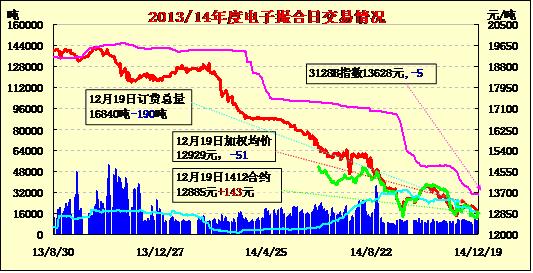 12月19日電子撮合交易成交10130噸,較上一交日減少220噸。訂貨量減少190噸,累計(jì)訂貨16840噸。交易合同開盤高低不一,日內(nèi)震蕩走勢,均價(jià)近漲遠(yuǎn)跌。新疆皮棉市場不溫不火,零星出現(xiàn)的部分成交也多是低價(jià)、小單成交,有軋花廠表示1-2車的出貨量與現(xiàn)貨庫存相比差距較大;全棉紗線的銷量明顯萎縮,圣誕節(jié)的臨近,而下游坯布廠的出口訂單卻在減少,內(nèi)銷市場訂單也很少,導(dǎo)致坯布廠開機(jī)率下滑,造成紗線企業(yè)的訂單也在逐步減少。