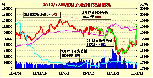 2月17日,商品棉交易市場交易成交9000噸,較上一交易日減5360噸。訂貨量不變,累計(jì)訂貨10080噸。今日商品棉交易多數(shù)合同高開,日內(nèi)窄幅震蕩,均價多數(shù)上漲。成交主要集中在MA1406和MA1407合同,分別成交4000噸和4400噸,其余合同成交清冷。