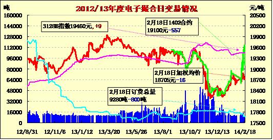 2月18日,商品棉交易市場交易成交9700噸,較上一交易日增加700噸。訂貨量減少800噸,累計(jì)訂貨9280噸。今日商品棉交易各合同開盤高低不一,日內(nèi)窄幅震蕩,均價(jià)漲跌互現(xiàn)。成交主要集中在MA1405、MA1406和MA1407合同,分別成交2200噸、3200噸和3360噸,其余合同成交清冷,整體成交量仍舊清淡。訂貨量減少,MA1402、MA1403和MA1404訂貨量分別減少100噸、500噸和200噸,其余合同訂貨量保持不變。目前MA1403為主要訂貨合同,訂貨6740噸。近月合同僅訂貨800噸。