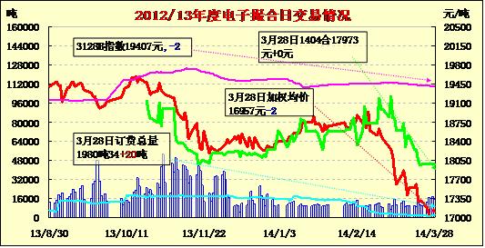 3月28日全國棉花交易市場商品棉交易成交15380噸,較上一交易日減少2180噸。訂貨量增20噸,累計訂貨1980噸。今日商品棉各合同開盤高低不一,全天寬幅震蕩走勢,均價上漲。今日官方正式公布關(guān)于調(diào)整儲備棉銷售有關(guān)政策的公告;新疆南疆地區(qū)棉農(nóng)已經(jīng)開始春播各項準(zhǔn)備,今年整體播種期較2013年要推遲一周時間左右,面積或有小幅下滑趨勢;港口外棉近期成交低迷,企業(yè)官方情緒較重。
