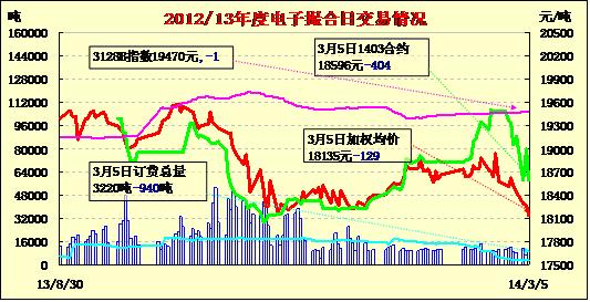 3月5日全國棉花交易市場商品棉交易成交10100噸,較上一交易日減少940噸。訂貨量減940噸,當(dāng)前訂商品棉交易累計(jì)訂貨3220噸。今日商品棉交易開盤高低不一,日內(nèi)震蕩下行,均價(jià)大幅下跌。近期企業(yè)競賣儲(chǔ)備棉熱情并不高,基本是基于即期需求,少量競賣;港口現(xiàn)貨難以銷售,一些印度棉現(xiàn)貨商降價(jià)拋售,船期銷售也基本很少;港口外紗報(bào)價(jià)略有下跌,但是據(jù)了解,走貨也并不好。國際市場:據(jù)新加坡聯(lián)合消息,本年度印度棉花出口接近170萬噸,其中約80%已完成出運(yùn)。部分市場人士預(yù)測真正的銷量已超過170萬噸;由于巴西農(nóng)戶報(bào)價(jià)高,2014季作物進(jìn)一步出口不太可能,甚至當(dāng)前2015季的報(bào)價(jià)也偏高。