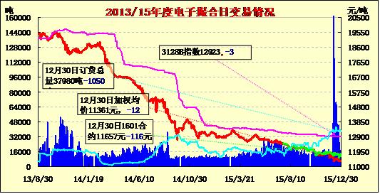 12月30日,電子撮合交易多數(shù)合同賣方掛牌量強(qiáng)于買方,活躍交易集中在遠(yuǎn)月合同。當(dāng)日MA1601合同提前交割成交305噸。價(jià)差趨勢(shì)上,現(xiàn)貨掛牌近月MA1601和鄭棉CF1601收盤價(jià)差拉大至280元/噸?,F(xiàn)貨延續(xù)弱勢(shì)調(diào)整走勢(shì),臨近年底,隨著下游紡企開工逐步下降,對(duì)棉花需求也將進(jìn)一步縮減,目前內(nèi)地庫質(zhì)量較好的3129級(jí)手摘價(jià)格在13500-13700元/噸,地產(chǎn)棉因質(zhì)量不同價(jià)格在12600-13200元/噸左右,因一致性差走貨略顯困難。進(jìn)口棉市場(chǎng)成交疲軟,價(jià)格弱勢(shì),庫存略有縮減,據(jù)悉張家港目前保稅區(qū)庫存約在3萬噸左右,入庫以印度棉為主,多數(shù)為印度CCI拋儲(chǔ)貨流入國內(nèi)。