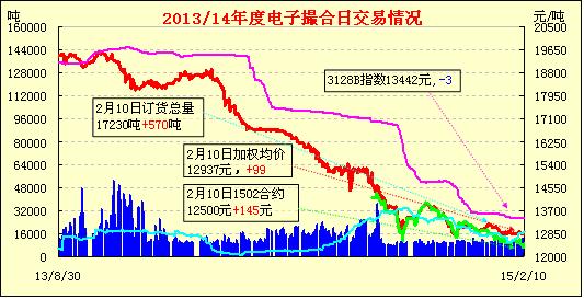 2月10日電子撮合交易成交10700噸,較上一交日減少1830噸。訂貨量增加570噸,累計(jì)訂貨17230噸。交易多數(shù)合同高開,日內(nèi)寬幅震蕩,均價(jià)上漲。2月8、9日河北、山東、江浙等地棉紡織廠陸續(xù)放假(一些大廠2月15日前后放假),棉花補(bǔ)庫(kù)工作也基本接束,棉花現(xiàn)貨詢價(jià)、成交寥寥可數(shù),只有少數(shù)棉花經(jīng)營(yíng)企業(yè)春節(jié)前試著囤幾批棉花,期望2月下旬至3月上旬有機(jī)會(huì)出手賺些差價(jià)。
