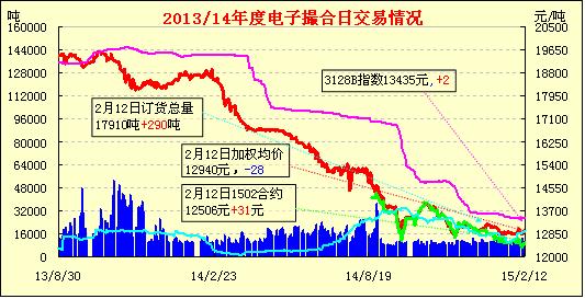 2月12日電子撮合交易成交7950噸,較上一交日減少370噸。今日訂貨量增加290噸,累計(jì)訂貨17910噸。今日現(xiàn)貨掛牌交易各合同開盤價高低不一,日內(nèi)震蕩整理,均價多數(shù)收漲。中國棉花收購參考價(3128B)2.87元/斤,較昨日不變,折皮棉成本12448元/噸。據(jù)海關(guān)統(tǒng)計(jì),2015年1月,我國棉紗進(jìn)口21.78萬噸,環(huán)比增加了5.68%,同比增加了20.41%。臨近春節(jié),棉紡企業(yè)陸續(xù)放假,目前市場交投幾近停滯。
