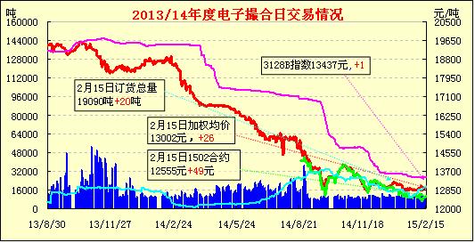 2月15日電子撮合交易成交10210噸,較上一交日減少60噸。訂貨量增加20噸,累計(jì)訂貨19090噸。交易各合同多數(shù)高開(kāi),日內(nèi)震蕩整理,均價(jià)漲跌互現(xiàn)。各企業(yè)陸續(xù)放假,交投基本停滯。從現(xiàn)貨價(jià)格來(lái)看,疆棉報(bào)價(jià)仍維持高位,內(nèi)地報(bào)價(jià)持穩(wěn)。