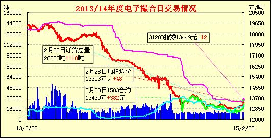 2月28日電子撮合交易成交10040噸,較上一交日增加1850噸。訂貨量增加110噸,累計訂貨20320噸。今日現(xiàn)貨掛牌交易多數(shù)合同高開,早盤沖高,午后震蕩走低,均價續(xù)漲。據(jù)了解,春節(jié)前一周和節(jié)后這幾天,青島港保稅棉入庫量有明顯的增加,部分倉庫在節(jié)前僅剩余一兩千噸庫存的,到目前已經(jīng)達到上萬噸的庫存。目前主要入庫的是美棉、印度、西非和巴西棉;目前國內(nèi)皮棉市場仍處于有價無市的狀態(tài),下游陸續(xù)恢復(fù)生產(chǎn)。