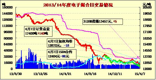 4月7日電子撮合交易成交13100噸,較上一交易日減少1310噸。訂貨量增加140噸,累計訂貨17400噸。交易各合同多數(shù)高開,盤中震蕩走低,均價多數(shù)收跌。15年甘肅意向植棉面積將調(diào)減10%-20%左右。據(jù)了解,今年農(nóng)資、棉種價格持穩(wěn),包地價同比降200元/畝。影響全疆的寒潮天氣已經(jīng)在清明節(jié)之后告一段落,南疆地區(qū)大部分棉區(qū)在4月10-15日開始播種。
